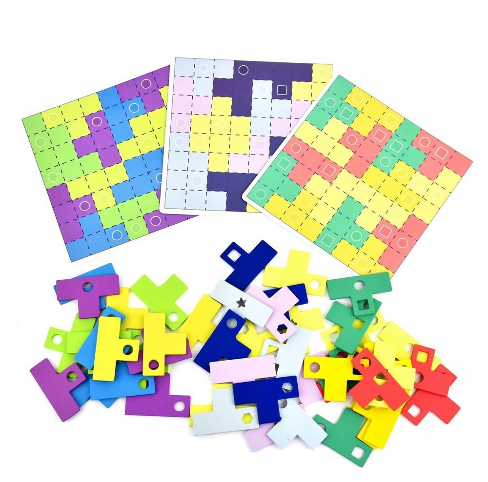 Navdih za Tangram set prihaja iz brezčasne igre Tetris, kjer morate dele med sabo postaviti tako, da zapolnijo prostor. Ta set otrokom pomaga prepoznavati barve in geometrijske oblike in s tem izboljšati logično razmišljanje, in to vse med igranjem! Kako igrati: glede na shemo na izbrani podlagi položite ustrezne dele, ki se morajo ujemati po barvah in oblikah. Podlage imajo različne stopnje težavnosti: lahka, srednja in zahtevna.